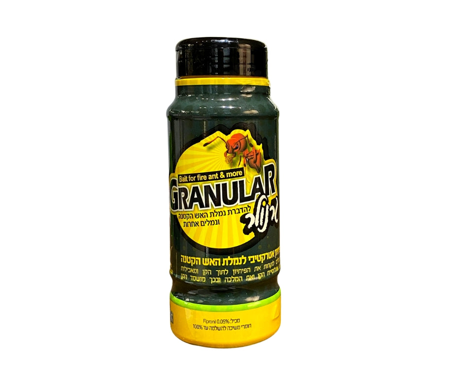 פיתיון נמלים 200 גרם GRANULAR, יתיון אטרקטיבי וכולל פיפרוניל בעל רעילות נמוכה לבני אדם ובעלי חיים הפתרון לבעיית הנמלים בחצר ולנמלת האש הקטנה, במחיר נוח ומשלוח מהיר באייל לבית ולגן