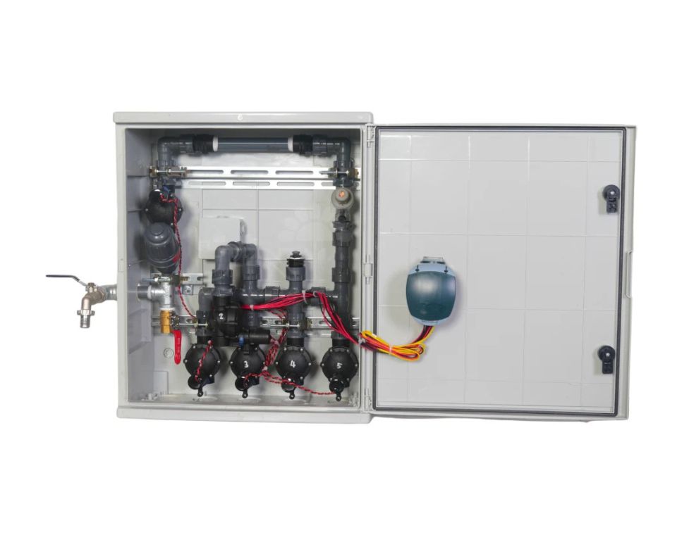 ארון השקיה 5 הפעלות DC מופעל ע״י סוללות, יכול לשלוט עד 6 פתיחות,ארון ההשקיה מגיע מורכב ומוכן לשימוש ולאחר בדיקות הפעלה ,לחצים ונזילות משלוח מהיר ומחיר נוח באייל לבית ולגן