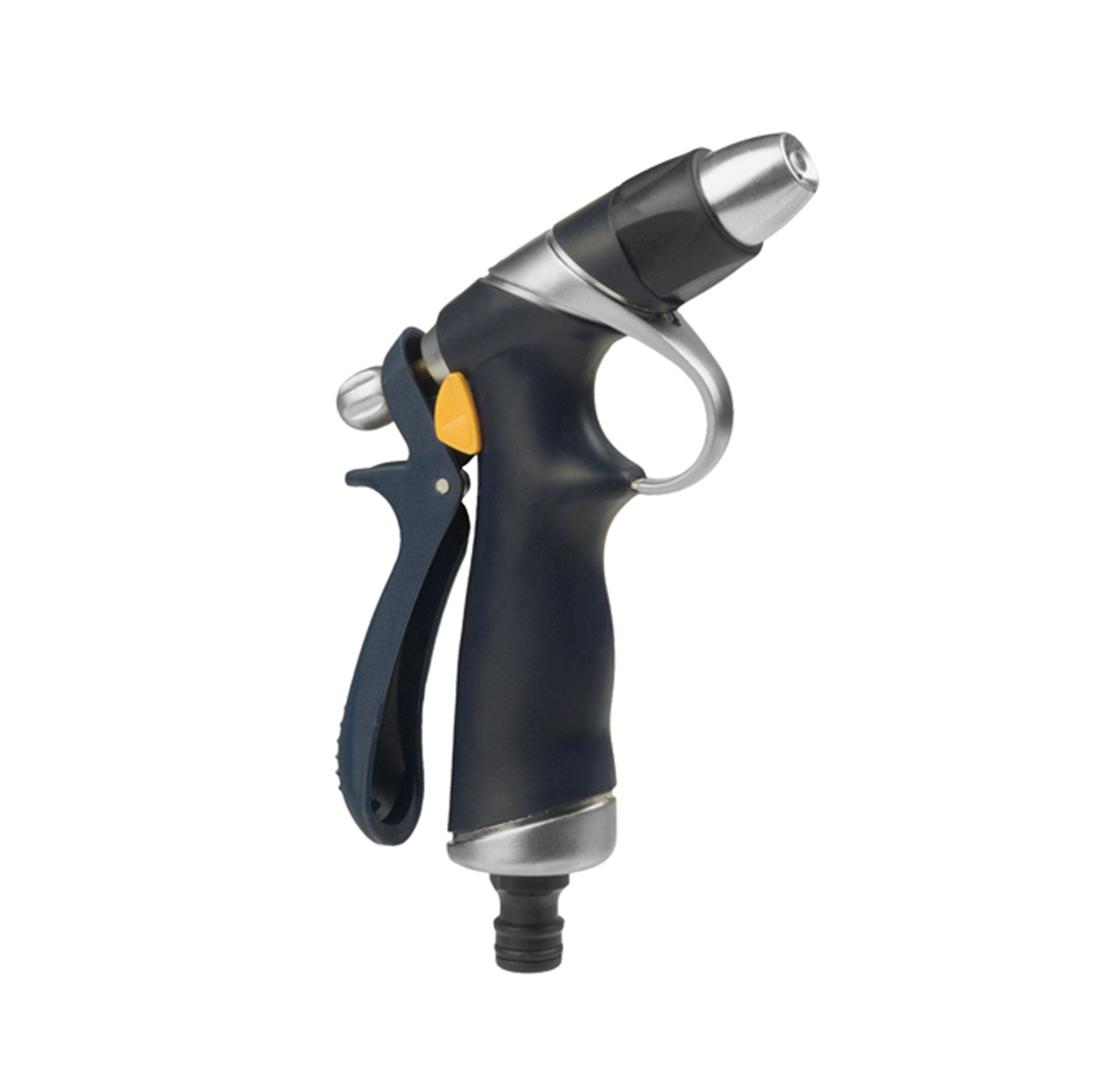 אקדח השקיה מקצועי עשוי מתכת ופלסטיק בצבע שחור וכסף-צהוב