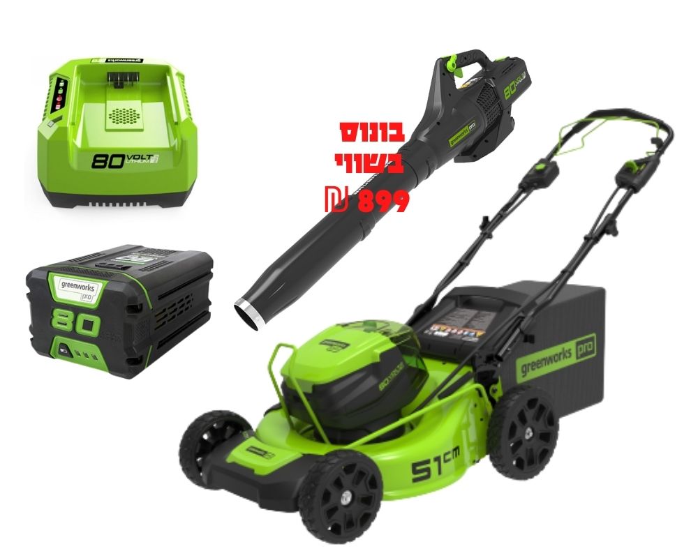 מכסחת "21 נסיעה עצמית 80V PRO עם תא סוללות כפול | סוללה 2.0Ah | מטען מהיר | בונוס מפוח 80V מתנה