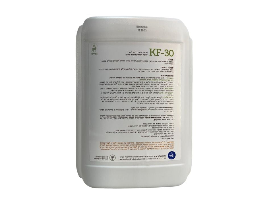 KF-30 הוא ביו-סטימולנט ודשן נוזלי אורגני רב-תכליתי להזנת הקרקע והצמח, תכשיר ותיק, מוכר ופופולרי מאוד, המבוסס על רכיבים טבעיים בלבד. הוא מאושר לחקלאות אורגנית כולל תקן NOP האמריקאי, ומתאים לשימוש בגינות ביתיות, מרפסות, אדניות, עציצים, חממות ולגידולים חקלאיים מקצועיים.