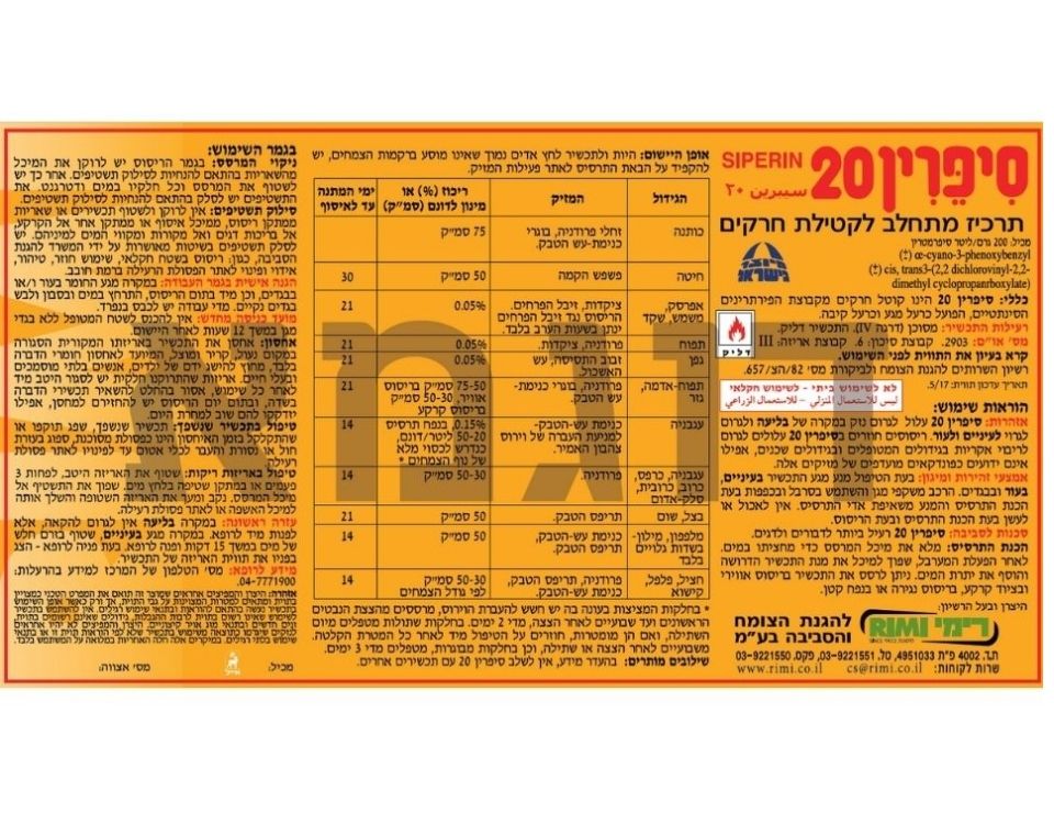 סיפרין 20 להדברת מגוון רחב של חרקים ומזיקים בגידולים חקלאיים ובשטחים פתוחים