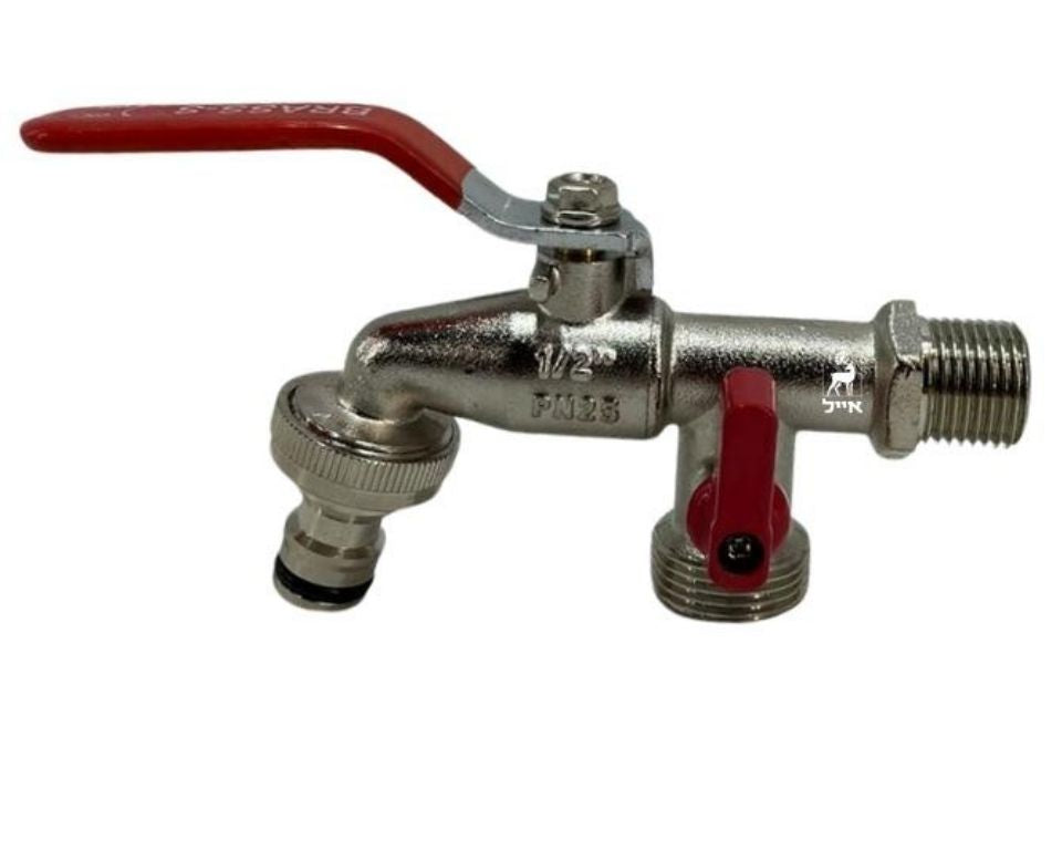 ברז גן לגינה. ,כדורי בעל 2 יציאות , עם שליטה על כל יציאה בנפרד
