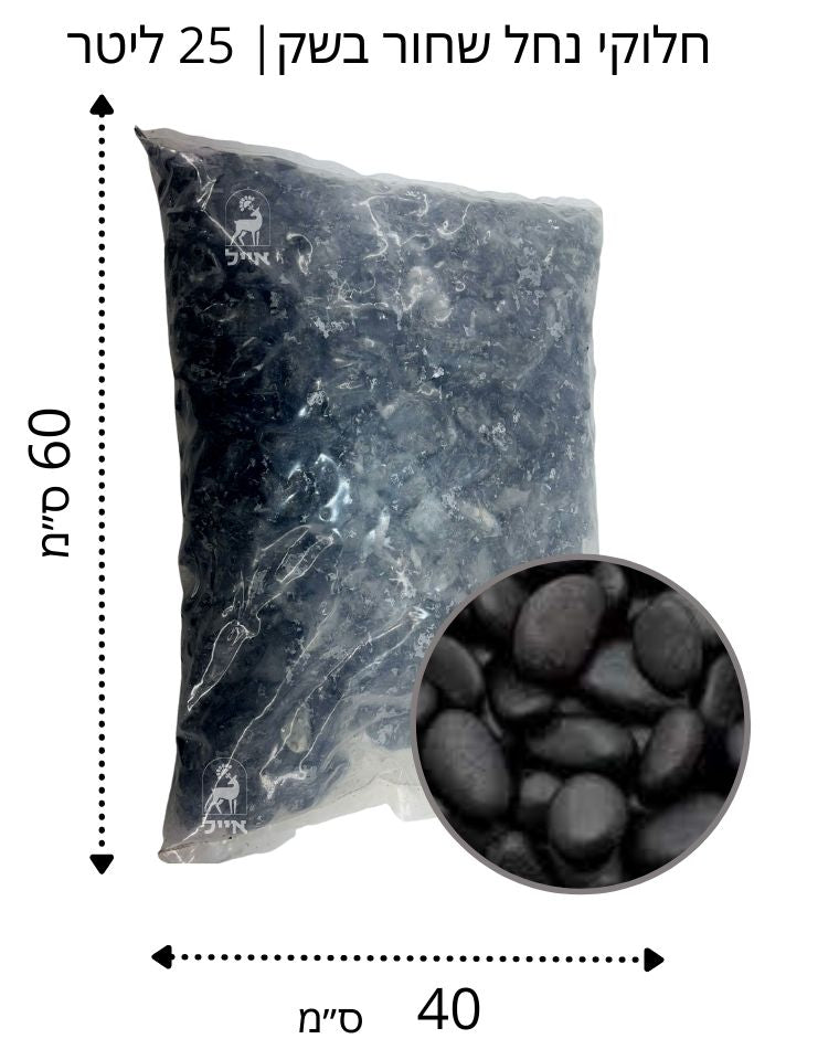 חלוקי נחל שחור מבריק | גודל 3 | שק 18 ק"ג