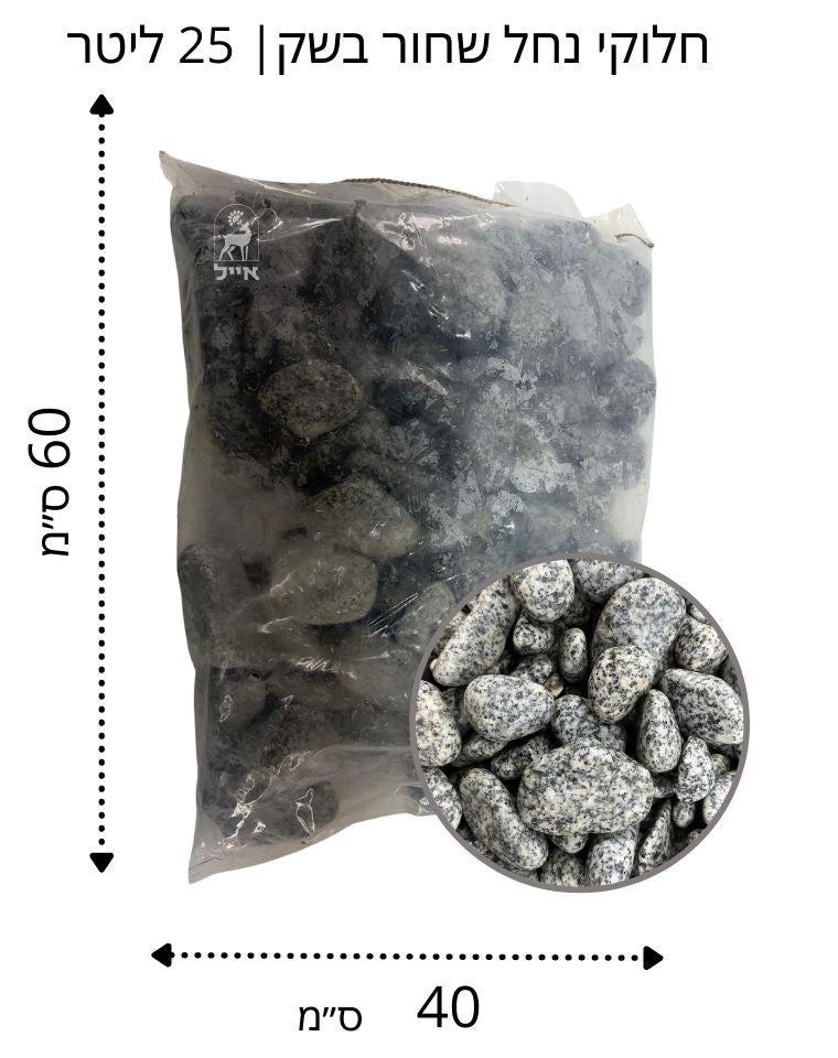 חלוקי נחל אפור מנוקד גודל 2 | שק 20 ק״ג