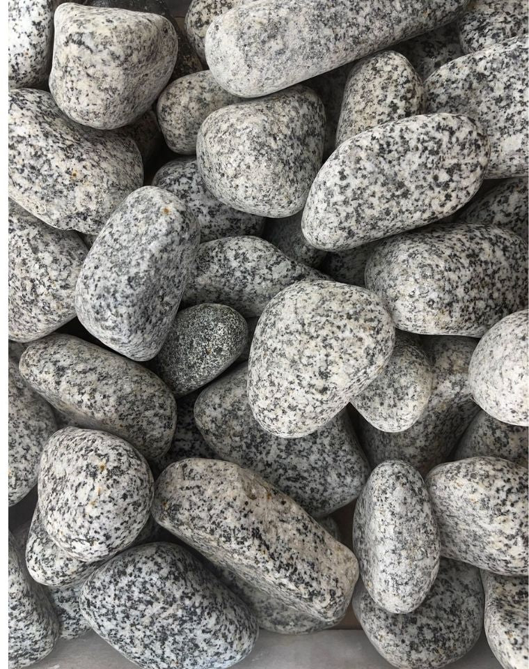 חלוקי נחל אפור גרניט ,מתאים לחיפוי שטחים ומראה נקי וצח.