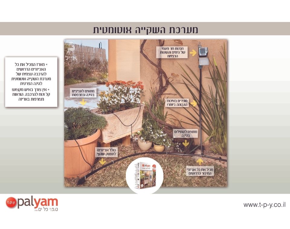 מערכת השקיה אוטומטית למרפסות הכוללת את כל האביזרים הנחוצים