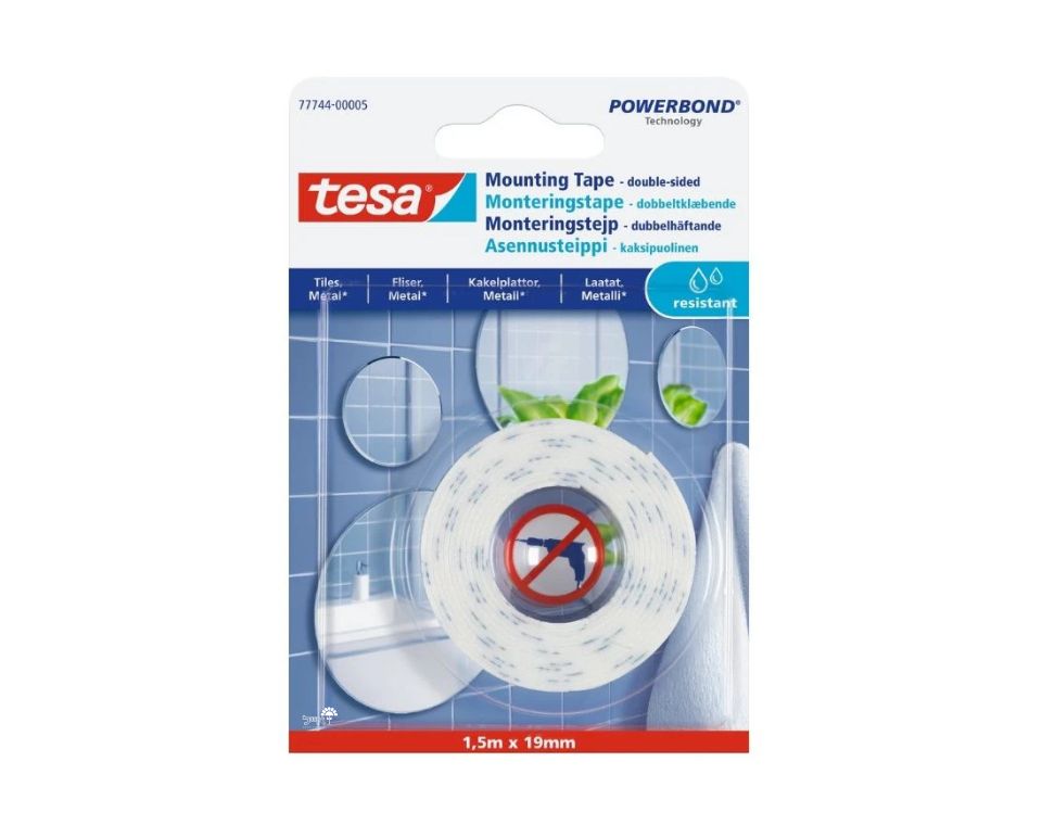 סרט דו-צדדי אולטרה חזק להדבקת אביזרים באזורים רטובים, חדרי רחצה וכו' מתאים לאריחים, עץ, זכוכית. לשימוש פנים פתרון קל ומהיר ללא צורך בהברגה אורך 1.5 מטר עובי 19 מ"מ