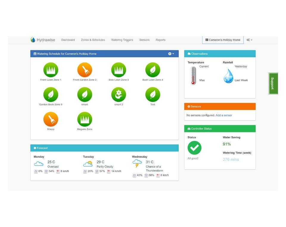 המערכת כוללת פונקציה חכמה להתאמת זמני ההשקיה לפי תנאי מזג האוויר המקומיים, ובכך מפחיתה את צריכת המים וחוסכת בעלויות.