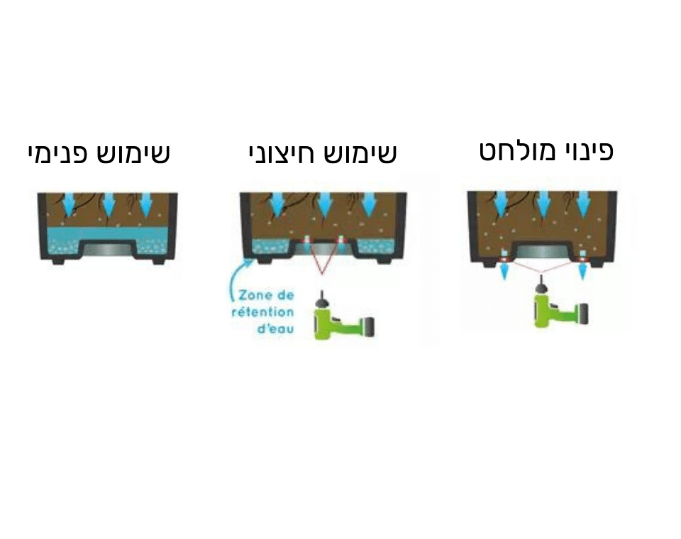 מומלץ באזורים עם כמות גשמים גבוהה, או למי שמעדיף שלא להשתמש במנגנון אגירת המים של האדנית.