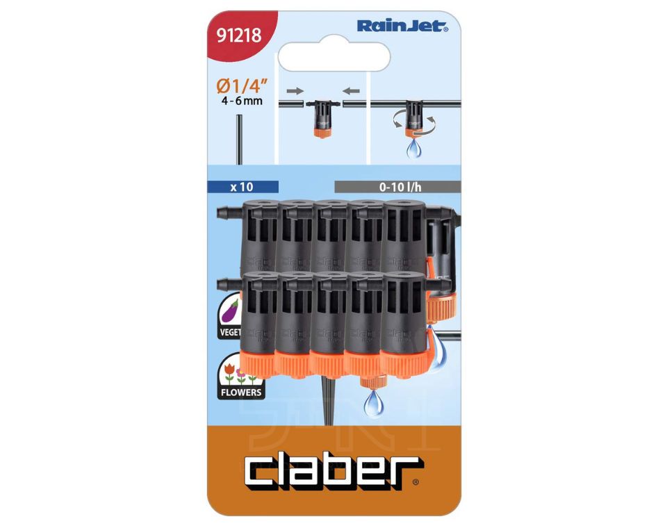 טפטפת מווסתת 0-10 ליטר לשעה מבית קלאבר החברה הטובה בעולם להשקיה ביתית, אין צורך ברכישת מלא סוגי טפטפות שונים , ניתן לשנות את ספיקת המים בסיבוב פשוט של ראש הטפטפת , בתאם לגודל העציץ או העץ , מוצר איכותי ואמין.