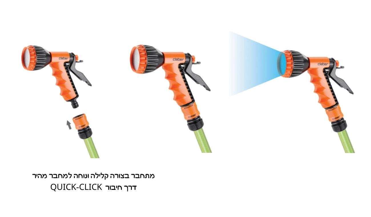 אקדח מים מקצועי, התזה בצורה של דוש, בעל ידית אחורית ארגונומית, מתקן נעילת סילון על ידי קליפס לזרימה ממושכת, מחיר זול, מתאים למחבר מהיר QUICK-CLICK, משלוח מהיר