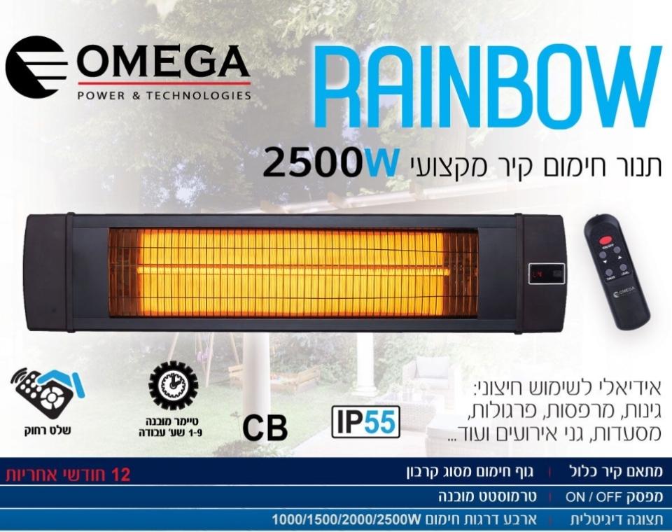 תנור חימום קיר למרפסת ולגינה RIANBOW מבית OMEGA