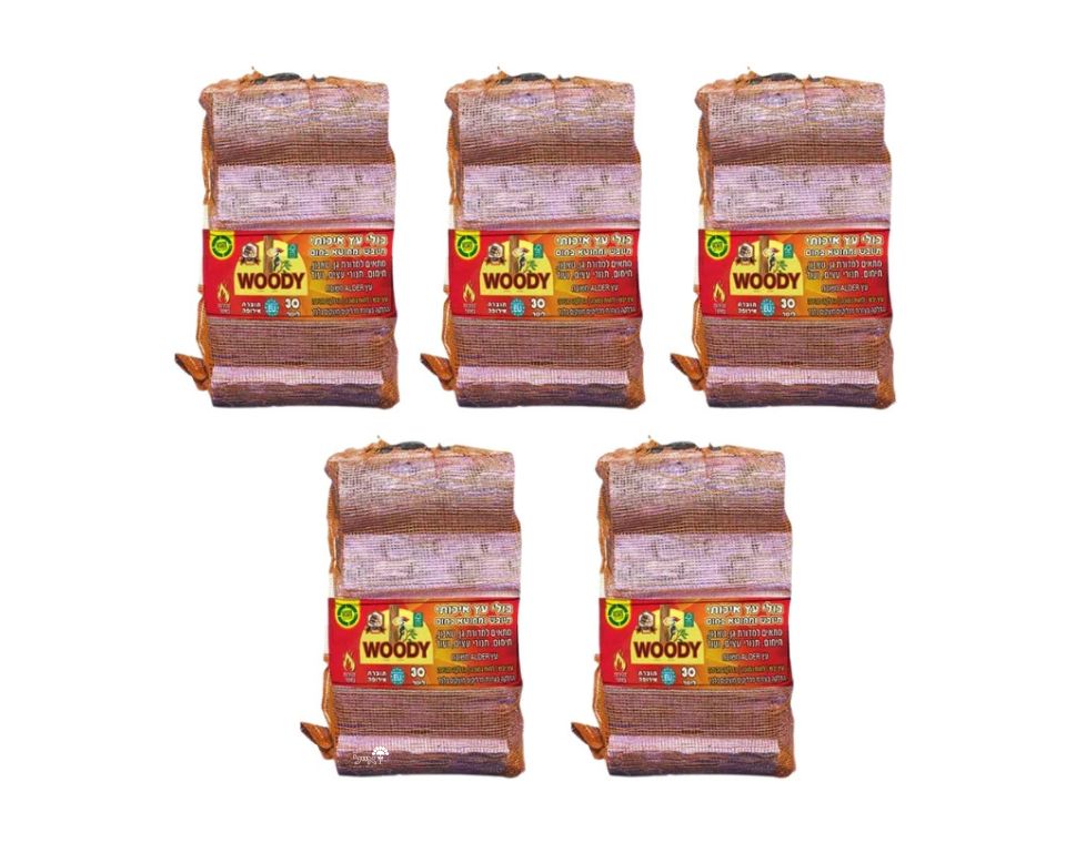 שקי עצי WOODY להסקה | 5 שקים | 105 ליטר