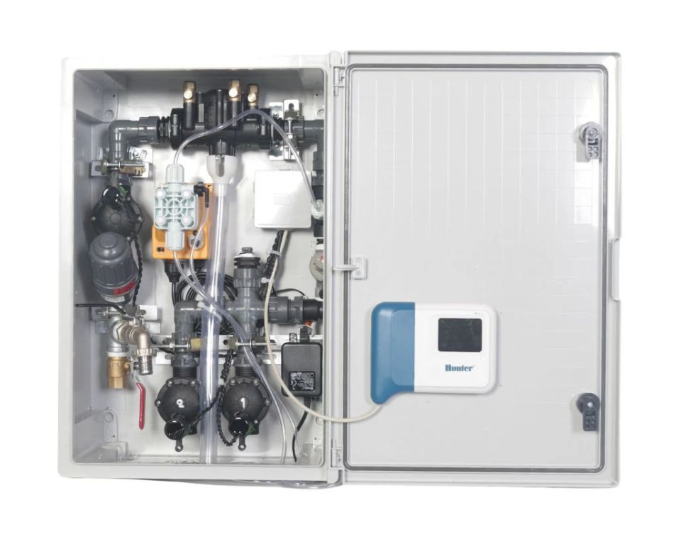 הארון מגיע מורכב ומוכן לשימוש לאחר בדיקות הפעלה, לחצים ונזילות. הוא כולל מחשב השקיה Hunter HC-601I-E השולט עד 6 פתיחות עם חיבור WIFI לשליטה מכל מקום בעולם ותוכניות השקיה חכמות המותאמות לעונות השנה ולתחזית מזג האוויר. בנוסף: ברז מאסטר חשמלי להגנה על המערכת, מז"ח RP-500 למניעת זרימה חוזרת, מסנן מקצועי של עמיעד, ווסת לחץ מתכת מתוצרת TS איטליה (3 אטמ׳, ניתן לכיוונון ולהתקנת מד לחץ), ברז גן, מדשנת חשמלית מבית ריין ורקורדים איכותיים לפירוק מהיר. כל המערכת מקובעת לפסי חיזוק מברזל מגולוון ומחוזקת בשלות מצופות נחושת לעמידות גבוהה לאורך שנים.