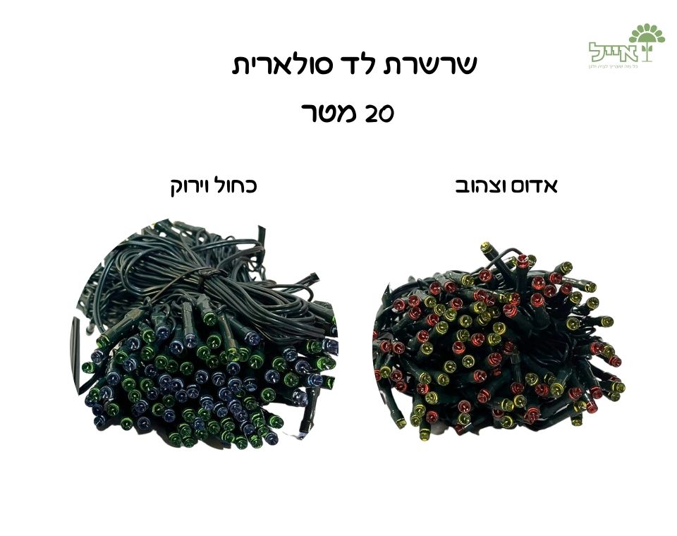 שרשרת לד סולארית, מעולה בתור תאורת אווירה בגינה, אורך השרשרת כ-20 מטרים השרשרת מגיעה עם פאנל סולארי + דוקרן לאדמה יש להתקין את גוף התאורה בצורה בה הפאנל הסולארי חשוף לאור השמש בצורה המיטבית, מומלץ להפנות לכיוון דרומי