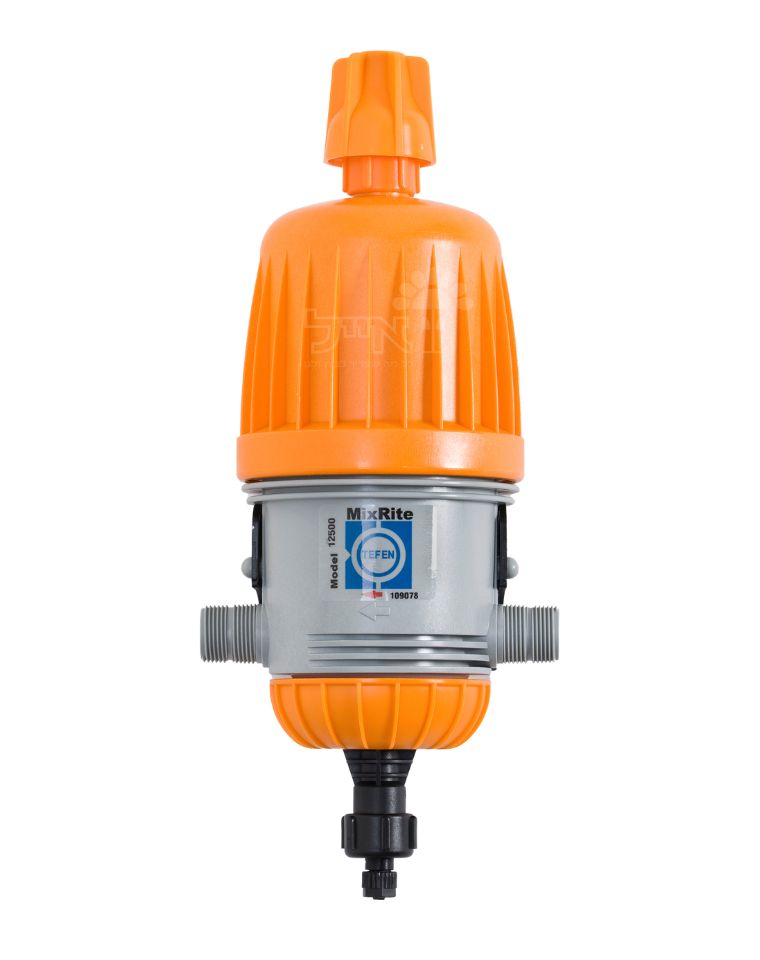 משאבת דשן קבועה דגם Mix Rite 2.5 מיועדת לגינון הביתי משאבות המינון הפרופורציונליות MixRite המופעלות במים של תפן, משמשות להבטחת הזרקה מדויקת של תוסף ישירות לתוך קו המים או הנוזל, עם קצבי זרימה, יחסי הזנה וטווחי לחץ שונים. משאבות אלה עמידות מאוד, מיוצרות מחומרים מורכבים המהונדסים לעמידה בפגעי מזג האוויר כמו גם כימיקלים וחומצות להזרקה משאבת הדשן של טפן עשויה מחומרים איכותיים ועמידים בפני מזג אוויר קיצוני של חום (UV) או קור קוטר חיבור כניסה ויציאה "3/4 מינון קבוע 0.2% (2 ליטר דשן על 1000 ליטר מים) טווח לחץ עבודה 1-8 אטמ' . טווח ספיקת מים דרך המשאבה 7-2500 ליטר / שעה