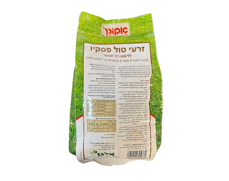 זרעי דשא טול פסקיו | 750 גרם | 40-50 מ"ר | אקוגן
