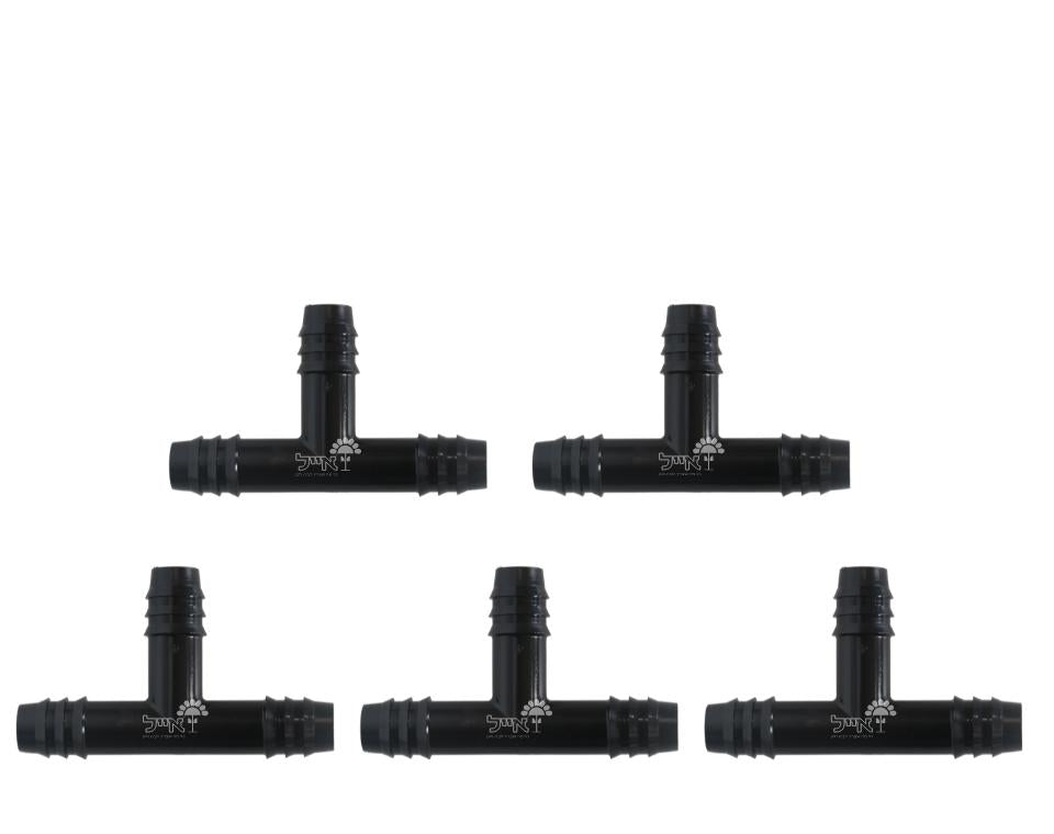 טי שן, 16 מ"מ, 5 יחידות, במארזטי שן לצינור בקוטר 16 מ"מ מרכיבים את המחבר באמצעות דחיפה ונענוע של הצינור עד להגעה למרכז המחבר קל ונח להרכבה