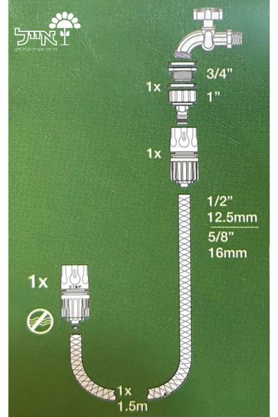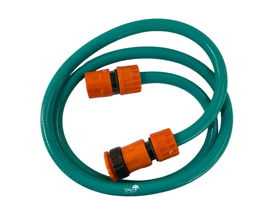 צינור ההזנה מגיע באורך של 1.5 מטר, מותאם במיוחד לחיבור בין הגלגלת או סליל הצינור לברז המים.