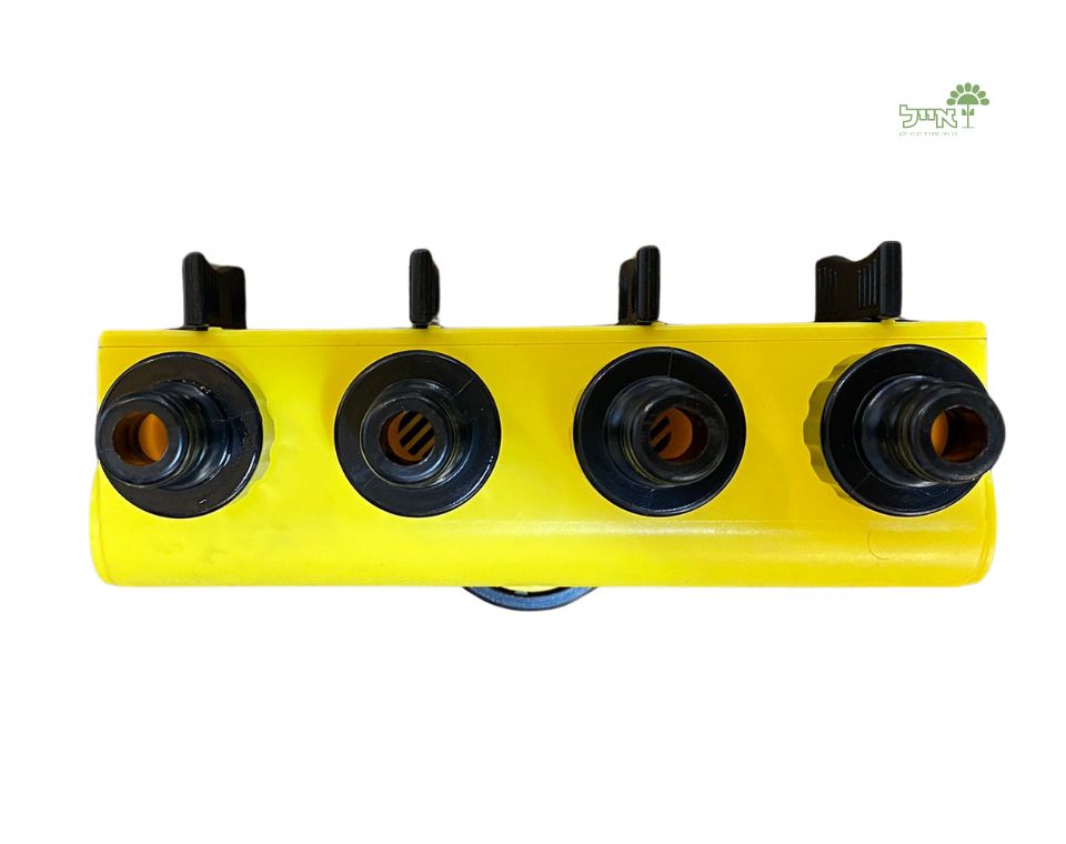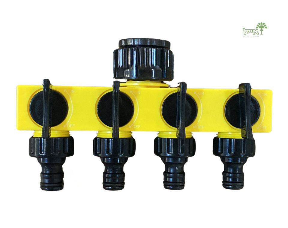 פשוט מבריגים את המפצל לברז הגינה, מחברים את הצינורות ליציאות, וניתן לפתוח או לסגור כל יציאה בלחצן הסיבובי.