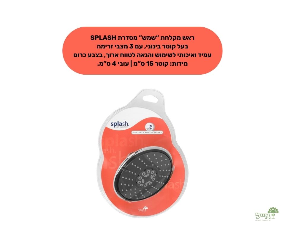 ראש המקלחת "שמש" מסדרת SPLASH קלאסי, איכותי וזרימת מים אחידה במקלחת קוטר בינוני של 15 ס"מ ועובי של 4 ס"מ ראש המקלחת מספק פיזור מים רחב ואחיד מגיע בגימור כרום יוקרתי שמשתלב בצורה מושלמת עם כל עיצוב אמבטיה עמיד במיוחד בפני קורוזיה ולחות לשימוש לטווח ארוך ללא פגיעה באיכות הזרימה כך שניתן לבחור בין זרם עדין ומרגיע, זרם חזק וממריץ, או שילוב מאוזן בין השניים