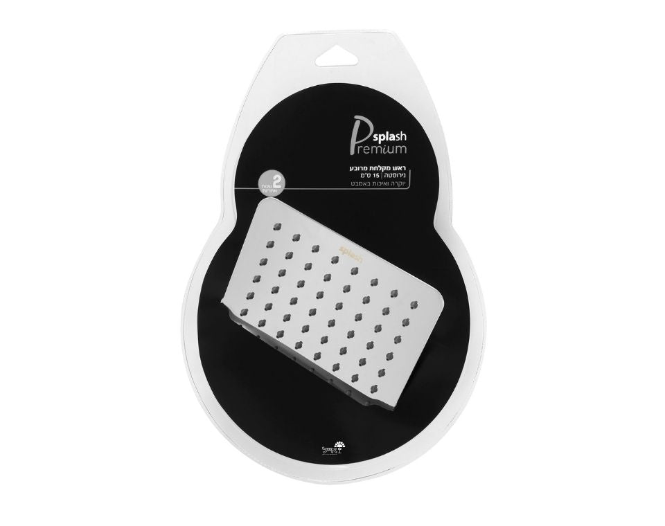 ראש המקלחת המרובע מסדרת SPLASH PREMIUM שילוב מושלם בין עיצוב יוקרתי, עמידות גבוהה וחוויית רחצה מהנה בגודל 15 ס"מ ובעובי 1 ס"מ משתלב באופן מושלם בכל חדר רחצה עשוי נירוסטה איכותית עמיד בפני חלודה, לחות ושחיקה מבטיח שימוש ארוך טווח ללא פשרות