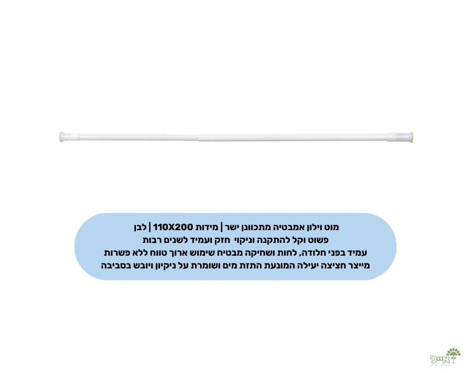 מוט וילון אמבטיה מתכוונן ישר | מידות 110X200 | לבן
