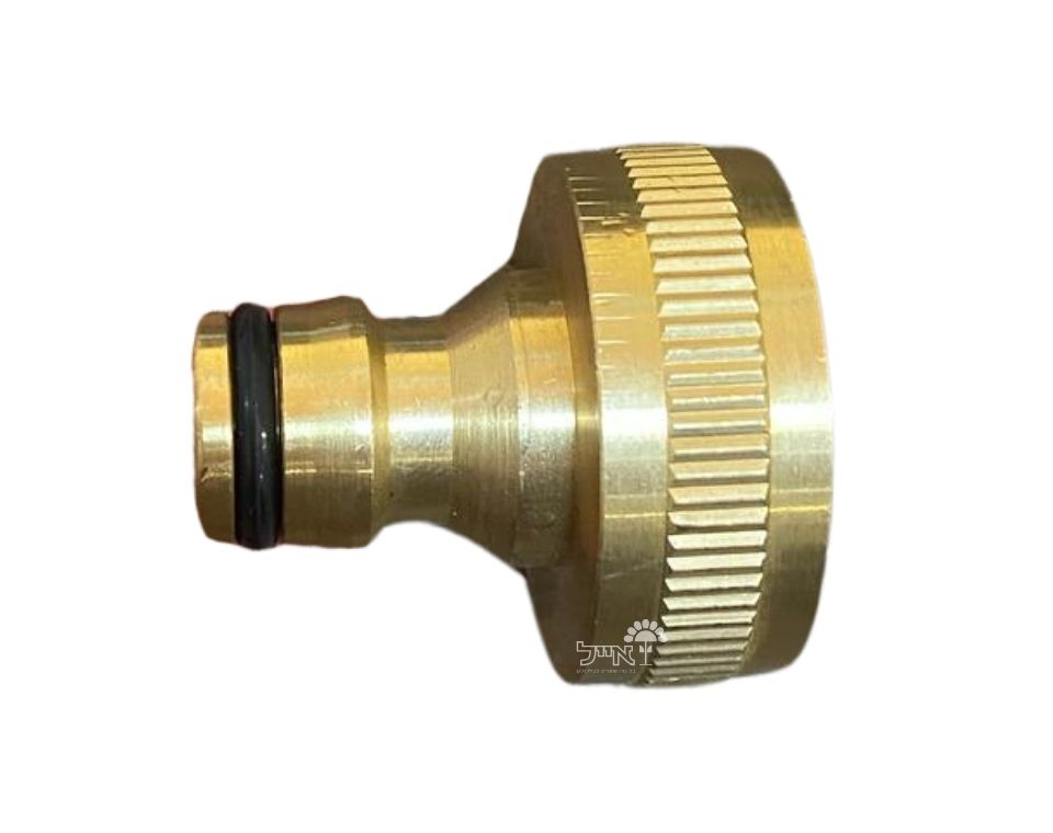 מחבר מהיר עשוי פליז מלא, מיועד להברגה על ברז גינה (1 אינץ') ולחיבור מהיר של קונקטור לצינור השקיה.