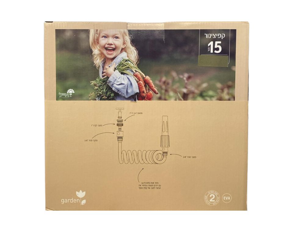 הקפיצינור של Garden באורך 15 מטר פתרון מעולה לכל מי שמחפש נוחות, גמישות ויעילות בעבודות השקיה וטיפוח הגינה צינור גינה ספירלי עשוי חומר EVA חומר קל, עמיד, גמיש ואיכותי שמבטיח שימוש נוח לאורך זמן ללא קשרים או הסתבכויות הודות למבנה הקפיצי הייחודי שלו, הצינור חוזר לצורתו המקורית לאחר כל שימוש ללא צורך בליפוף, קיפול או אחסון מסורבל