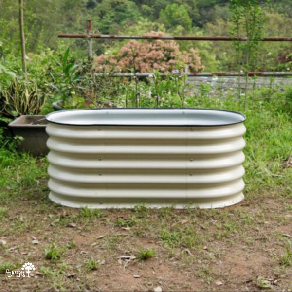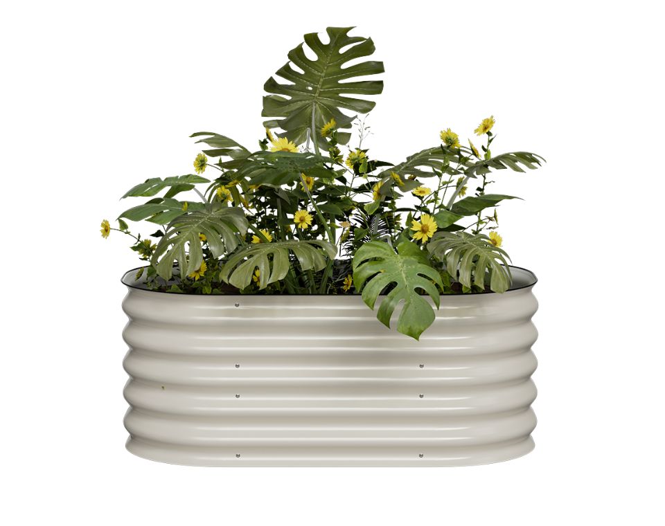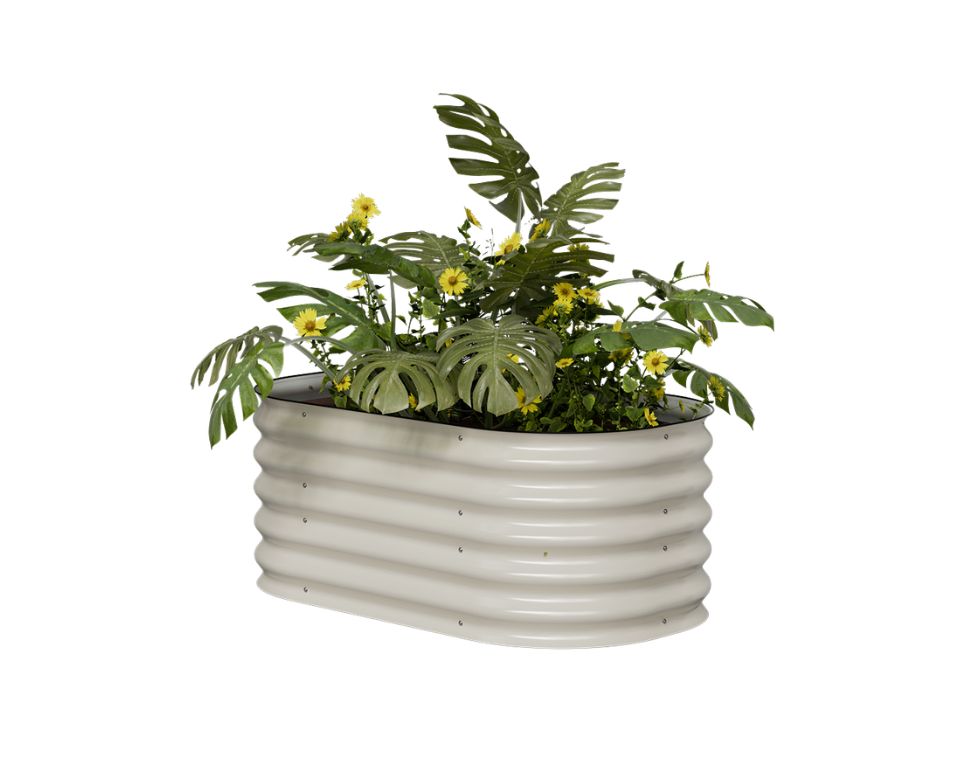 אדנית/ערוגת מתכת מודולרית בגודל 105x60x43 ס"מ בגוון קרם המיועדת לגידול עצמי של ירקות, עשבי תיבול וצמחי נוי. האדנית עשויה מתכת מגולוונת איכותית ועמידה שאינה מחלידה, ומיועדת להתקנה על הקרקע ללא תחתית, תוך יצירת סביבת גידול נוחה, בריאה ומבוקרת.
