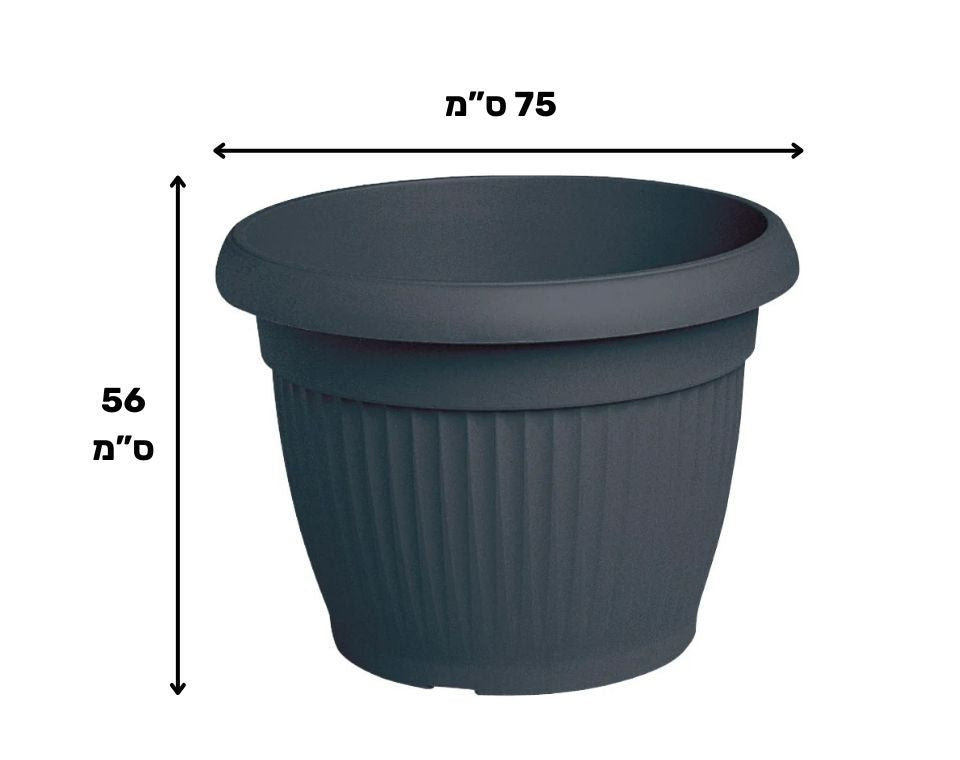 עציץ דמוי חרס פסים | פחם | קוטר 75 ס"מ | 145 ליטר