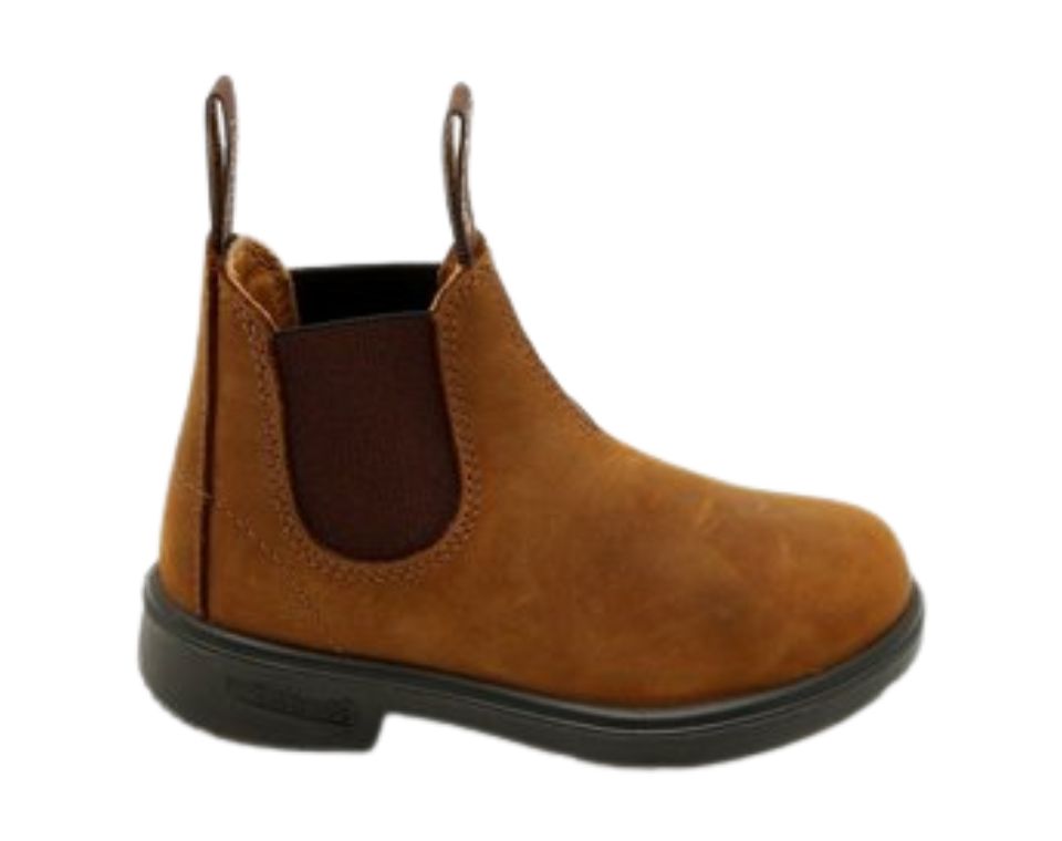 מגפי ילדים דגם 1563 בצבע חום מבית בלנסטון Blundstone מגפי ילדים בצבע חום עם רצועות אלסטיות בגוון חום כהה משני צדי הנעל לנעילה וחליצה קלה רפידה נשלפת רכה ונוחה, וסוליית PU לתחושת יציבות בכל צעד עשויות עור איכותי גמיש ונוח