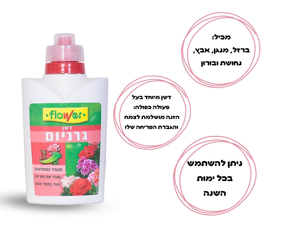 דשן לגרניום | לשיפור גדילת גרניום ופורחים | 500 מ״ל