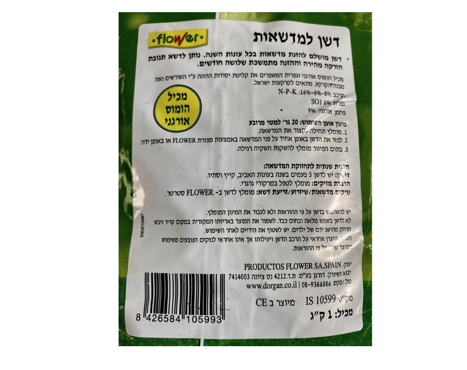 מכיל הומוס אורגני לשיפור מבנה הקרקע, אוורור ושיפור ספיגת מים ואוויר