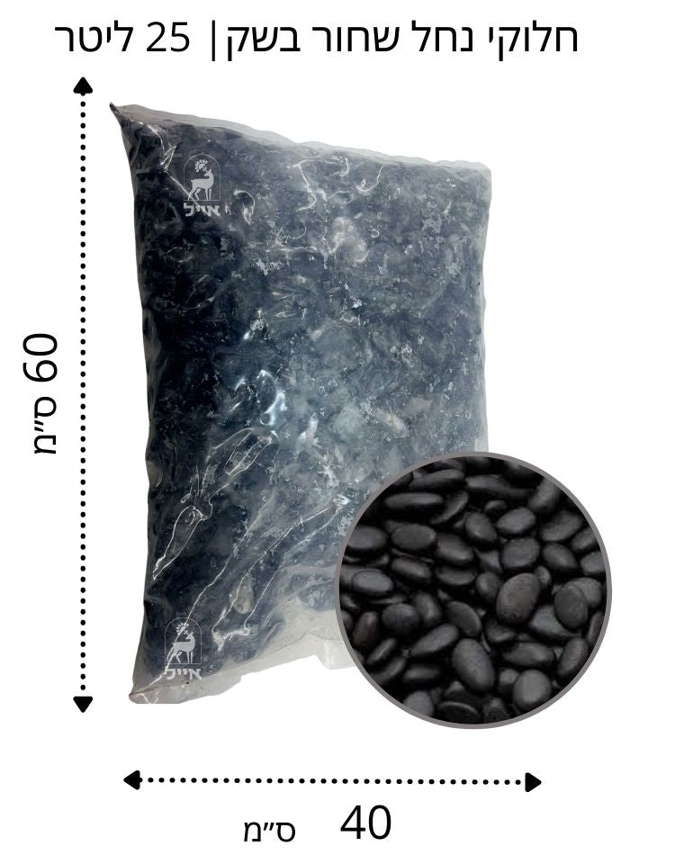 חלוקי נחל | שחור | מבריק גודל 2 | שק 18 ק"ג