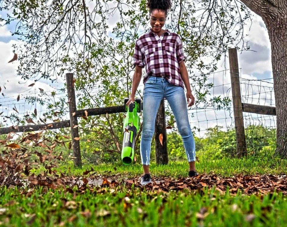 מפוח עלים עוצמתי מבית GreenWorks הפועל במערכת 48V (שתי סוללות 24V POWERALL). מספק כוח יוצא דופן תוך שמירה על תאימות מלאה לפלטפורמת 24V – פתרון מתקדם, שקט ויעיל לניקוי חצרות, גינות ושבילים.