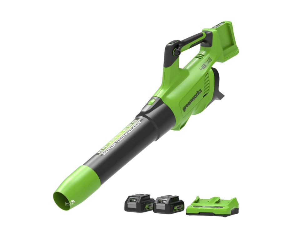 מפוח יד נטען מבית GreenWorks הפועל במערכת 48V (שתי סוללות 24V POWERALL) ומספק עוצמה גבוהה במיוחד תוך שמירה על תאימות מלאה לפלטפורמת 24V. פתרון מתקדם, שקט ויעיל לניקוי חצרות, שבילים וגינות פרטיות.