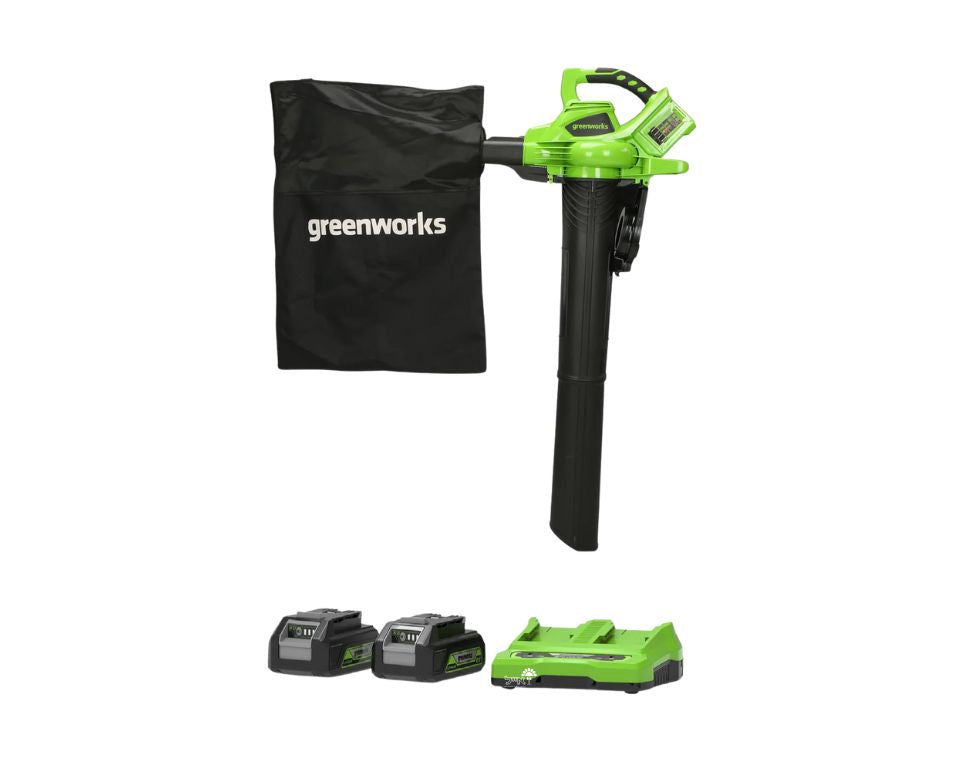 מפוח ושואב עלים עוצמתי מבית GreenWorks הפועל במערכת 48V (שתי סוללות 24V) ומשלב נשיפה, שאיבה וגריסה במכשיר אחד. פתרון אידיאלי לניקוי חצרות, גינות, שבילים ומרפסות – כלי רב־שימושי לנוחות מקסימלית בעבודה יומיומית.