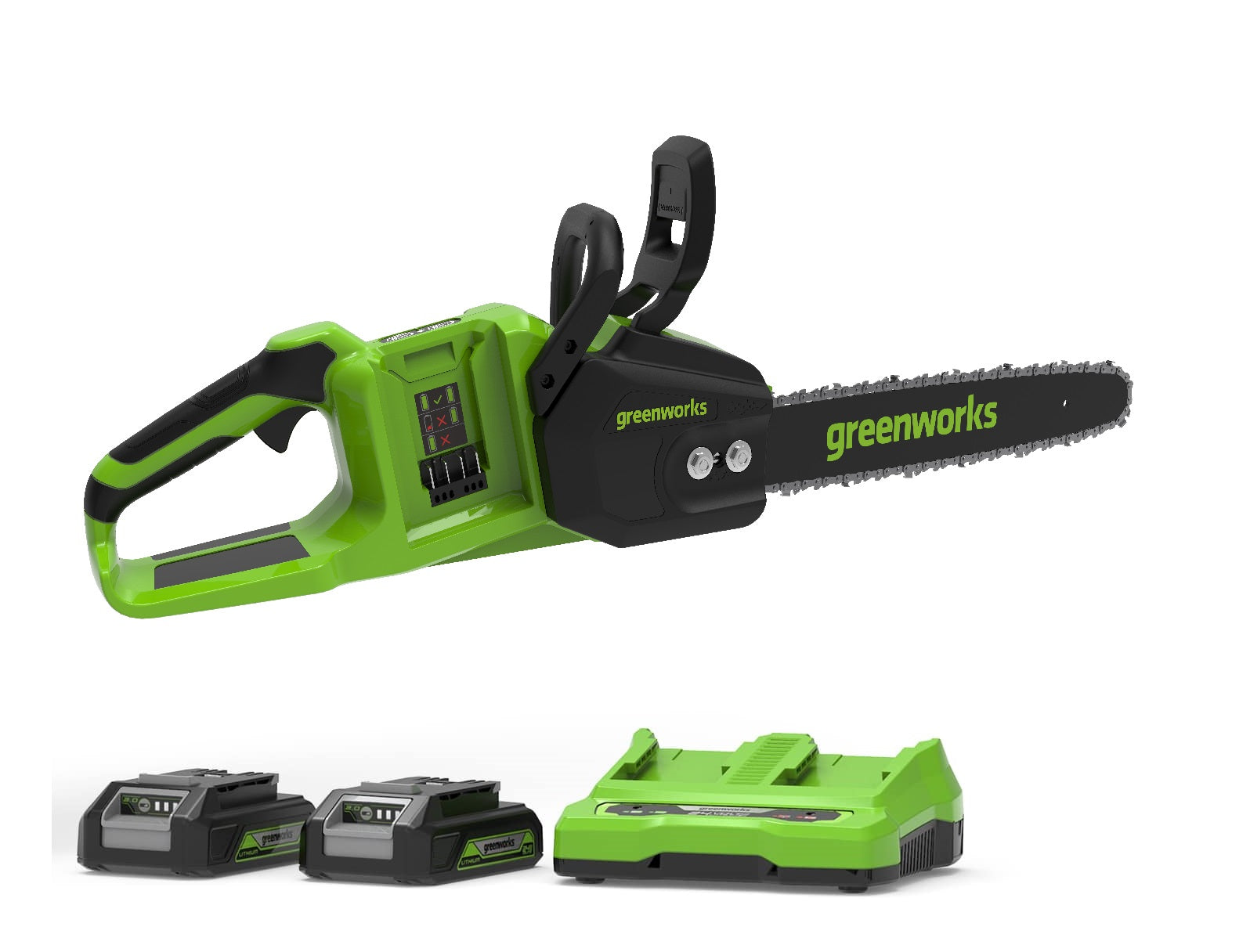 מסור שרשרת 14 אינץ' מבית GREENWORKS הפועל במתח 48V (שילוב של 2 סוללות 24V) עם מנוע Brushless עוצמתי ואמין. הכלי מספק ביצועים גבוהים ומהירות שרשרת מרשימה של 20 מטר לשנייה – לחיתוך מהיר, חלק ויעיל.