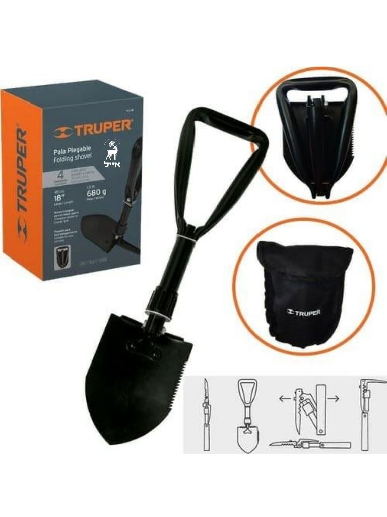 את חפירה מיני מתקפל מבית TRUPER כלי קומפקטי, חזק ואמין לשימוש בשטח.