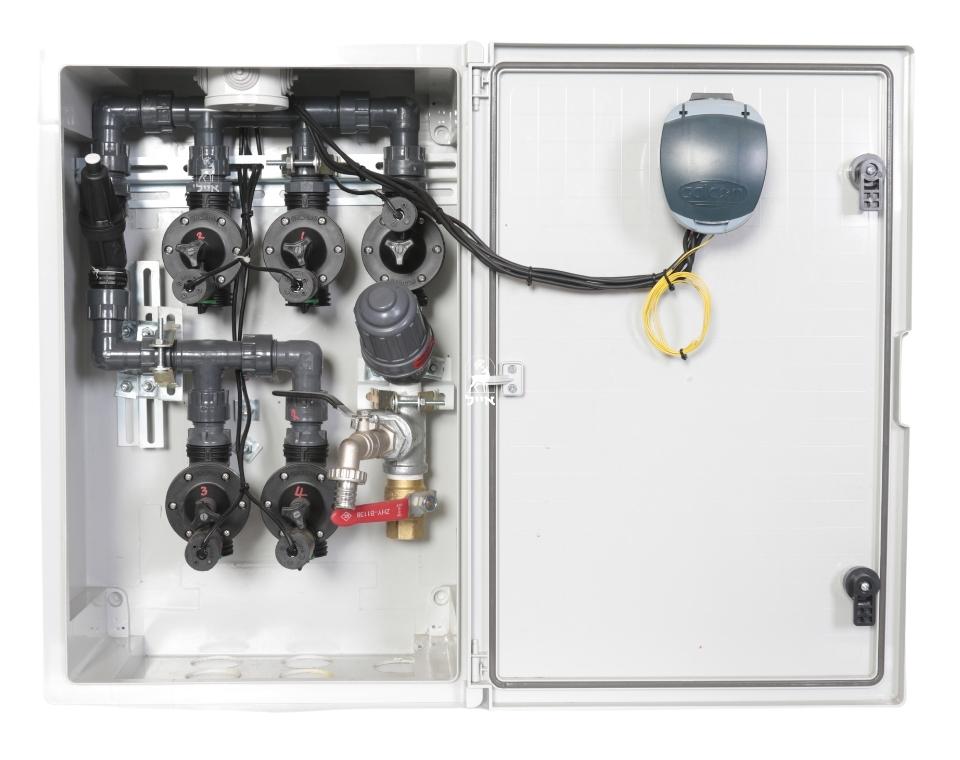 ארון השקיה 4 הפעלות DC מופעל ע״י סוללות, 4 פתיחות, במחיר נוח ומשלוח מהיר באייל לבית ולגן