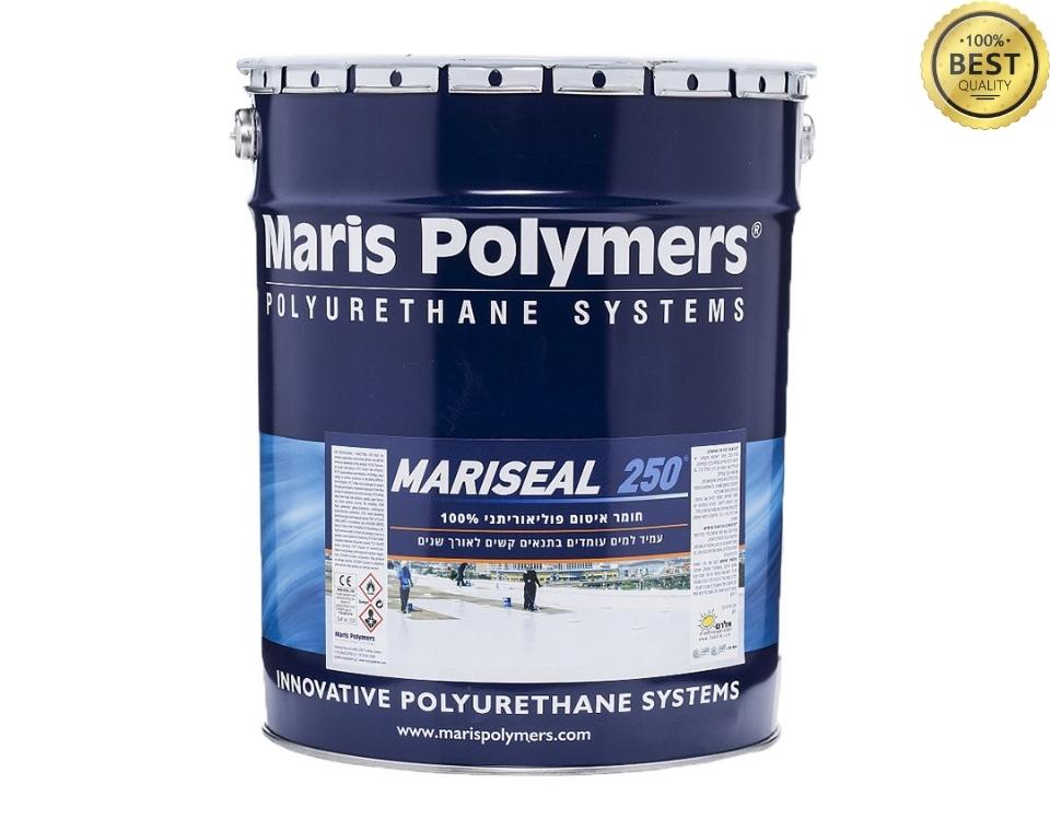 מריס 250 הוא חומר איטום גגות 100% פוליאוריטן. עמיד במים עומדים ובתנאי מזג אוויר קשים. בעל כושר הידבקות גבוה לחומרים שונים. מתאים לאיטום גגות בטון, איסכורית, אסבסט, תעלות ומרזבים, איטום אדניות בטון ועץ. זמן ייבוש ראשוני 3 שעות, בין שכבות 6 שעות, סופי 24 שעות. עמיד במים עומדים ובתנאי מזג אוויר קשים זמן ייבוש: ראשוני 3 שעות, בין שכבות 6 שעות, סופי 24 שעות