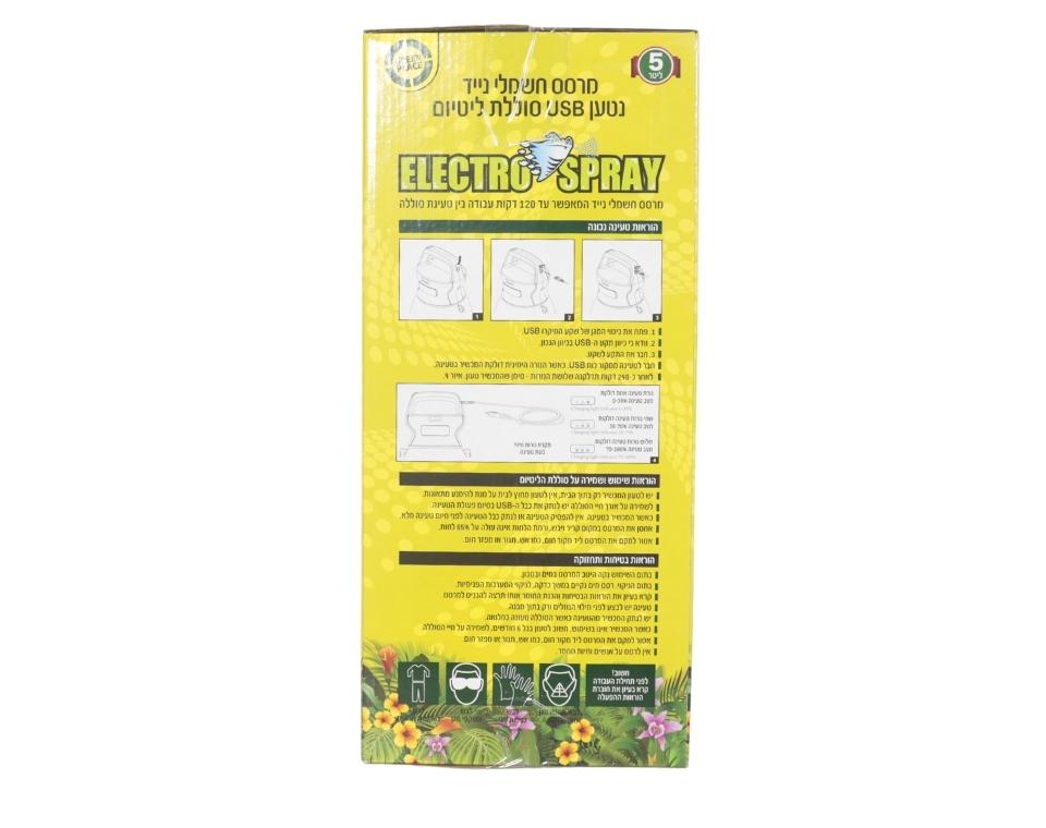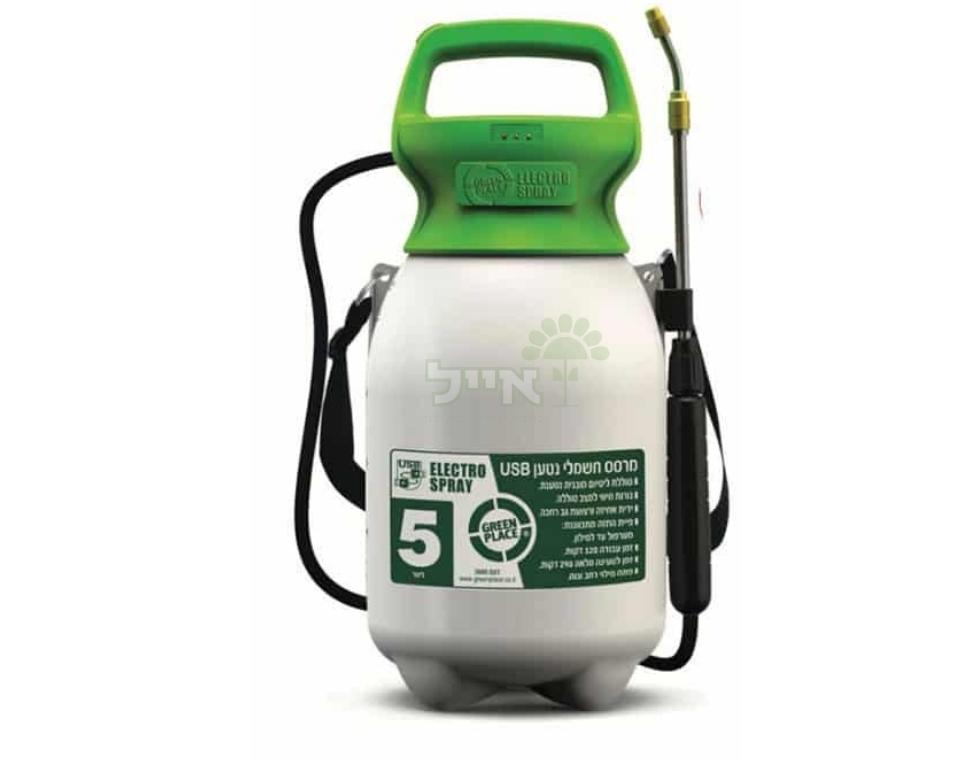 הסוללה נטענת באמצעות חיבור USB לטעינה מהירה ופשוטה, ומספקת עד כ־90 דקות עבודה רציפה. המיכל בנפח 5 ליטר כולל פתח מילוי רחב למילוי קל ונוח. פיית ההתזה מתכווננת ומאפשרת בחירה בין מצבי ריסוס שונים בהתאם לצורך ריסוס ממוקד או פיזור רחב. ידית האחיזה נוחה ויציבה, ומתאימה לעבודה ממושכת ללא מאמץ.