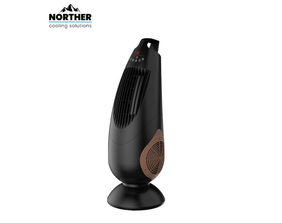 מנוע חסכוני ושקט 100W, נשלט באמצעות שלט, צג דיגיטלי וכפתורי טאץ', תריס מתכוונן, טיימר 12 שעות כולל שעון שבת, עיצוב חדשני ומתקדם בצבע שחור - עץ