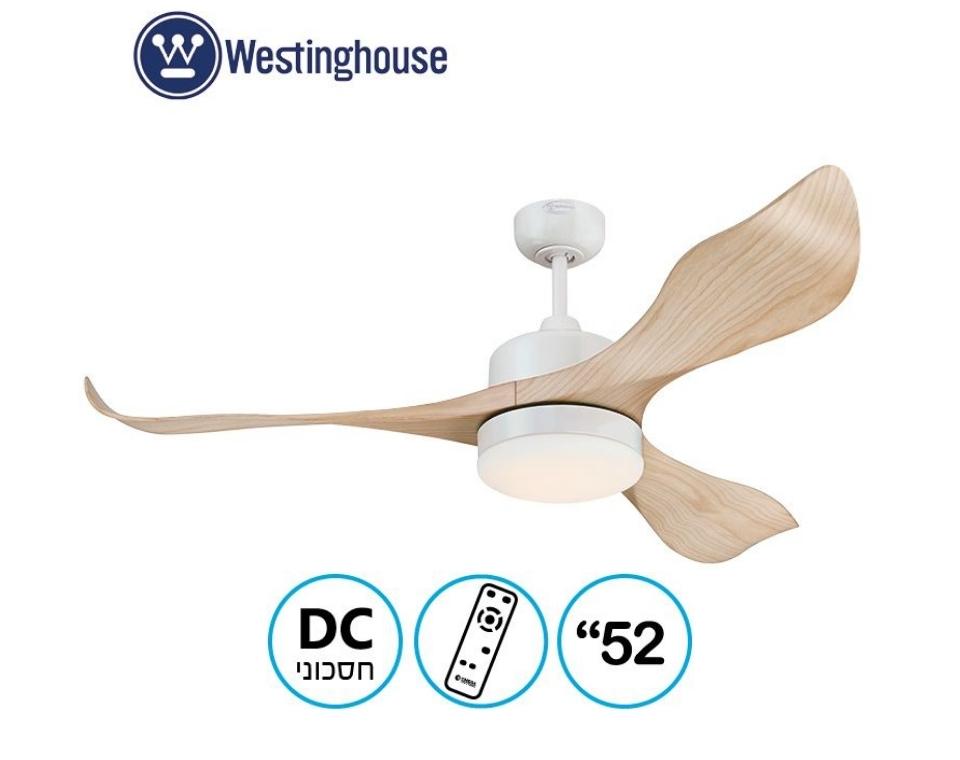 מאוורר תקרה דקורטיבי מבית המותג האמריקאי WESTINGHOUSE בקוטר 52 ,“מתאים לחדרים בגודל עד 36 מ”ר מנוע עוצמתי DC שקט במיוחד בעל יעילות אנרגטית גבוהה, הפעלה באמצעות שלט גוף תאורה מובנה 17W אור קר 4000K 15 שנות אחריות על המנוע ושנתיים אחריות על חלקים