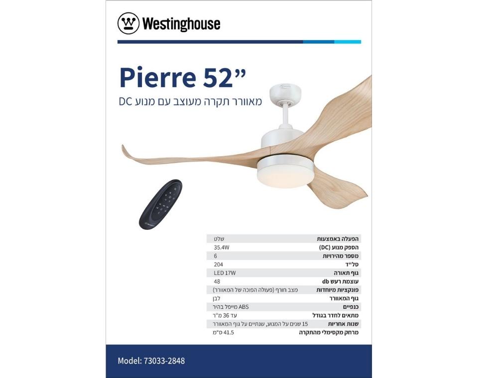 מאוורר תקרה דקורטיבי 52" | דגם Pierre לבן/עץ | כולל גוף תאורה מובנה