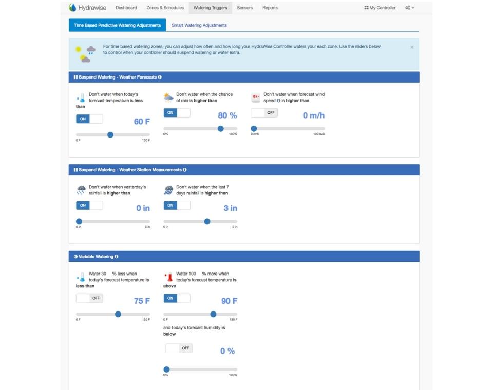 בנוסף לתוכניות הרגילות ,קיימת אופציה לכוון מחדש את ההשקיה בהתאם לתנאי מזג האוויר המקומיים ובכך להקטין את צריכת המים