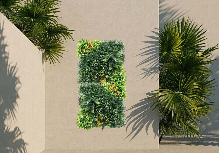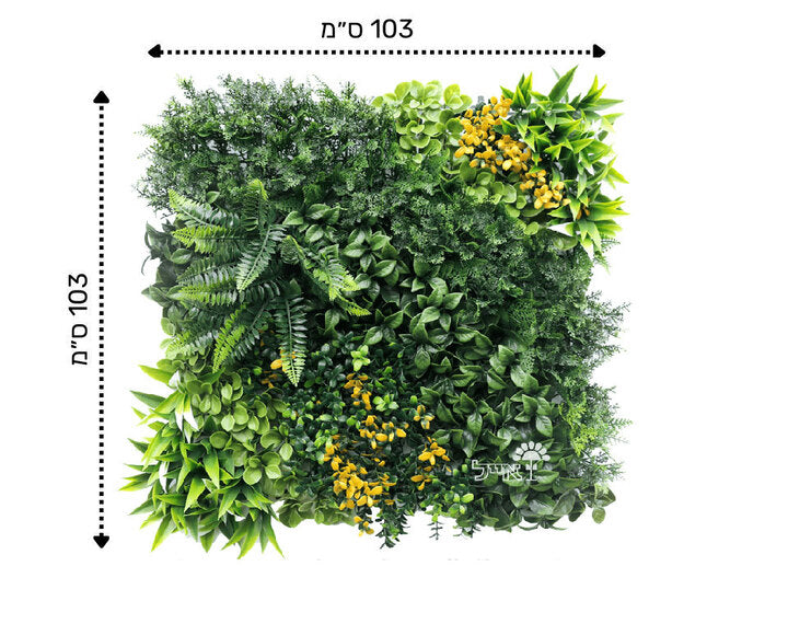 קיר ירוק מתכוונן - עלה משולב פרחים צהובים | 50/50 ס״מ