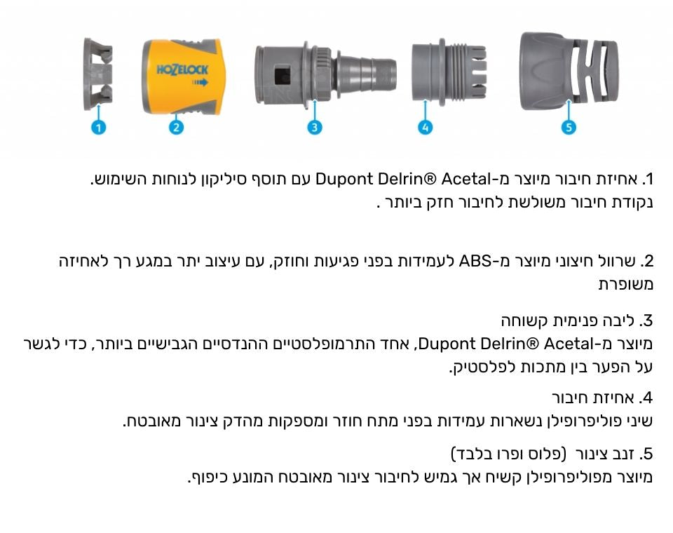 חזקים ועמידים - מחברי Hozelock מספקים חוזק ועמידות בפני שימוש יומיומי ומבטיחים חיבור מאובטח ללא דליפות בכל פעם.